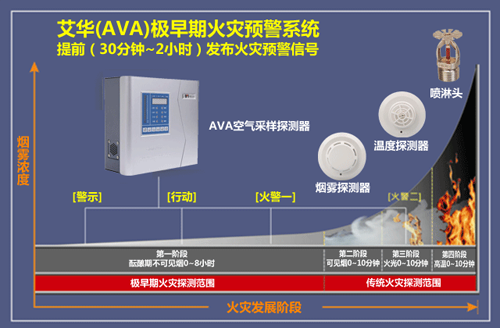 吸氣式感煙火災(zāi)探測(cè)器跟傳統(tǒng)的(點(diǎn)型)煙霧探測(cè)器有所不同。空氣采樣系統(tǒng)由在天花板上方或下方每隔幾米平行安裝的管道組成。在每根管子的上面,每隔幾米就鉆有一個(gè)小孔,這些小孔很均勻的在天花板上分布,這樣就形成了一組矩陣型的空氣采樣孔。利用探測(cè)主機(jī)內(nèi)部抽氣泵所產(chǎn)生的吸力,空氣樣品或煙霧通過(guò)這些小孔被吸入管道中并傳送到達(dá)探測(cè)主機(jī)內(nèi)部的高靈敏度煙霧探測(cè)腔檢測(cè)空氣樣品中的煙霧顆粒濃度,可實(shí)現(xiàn)未現(xiàn)火苗時(shí)提前報(bào)警,以達(dá)到在損失未發(fā)生時(shí)就已扼殺在搖籃中。